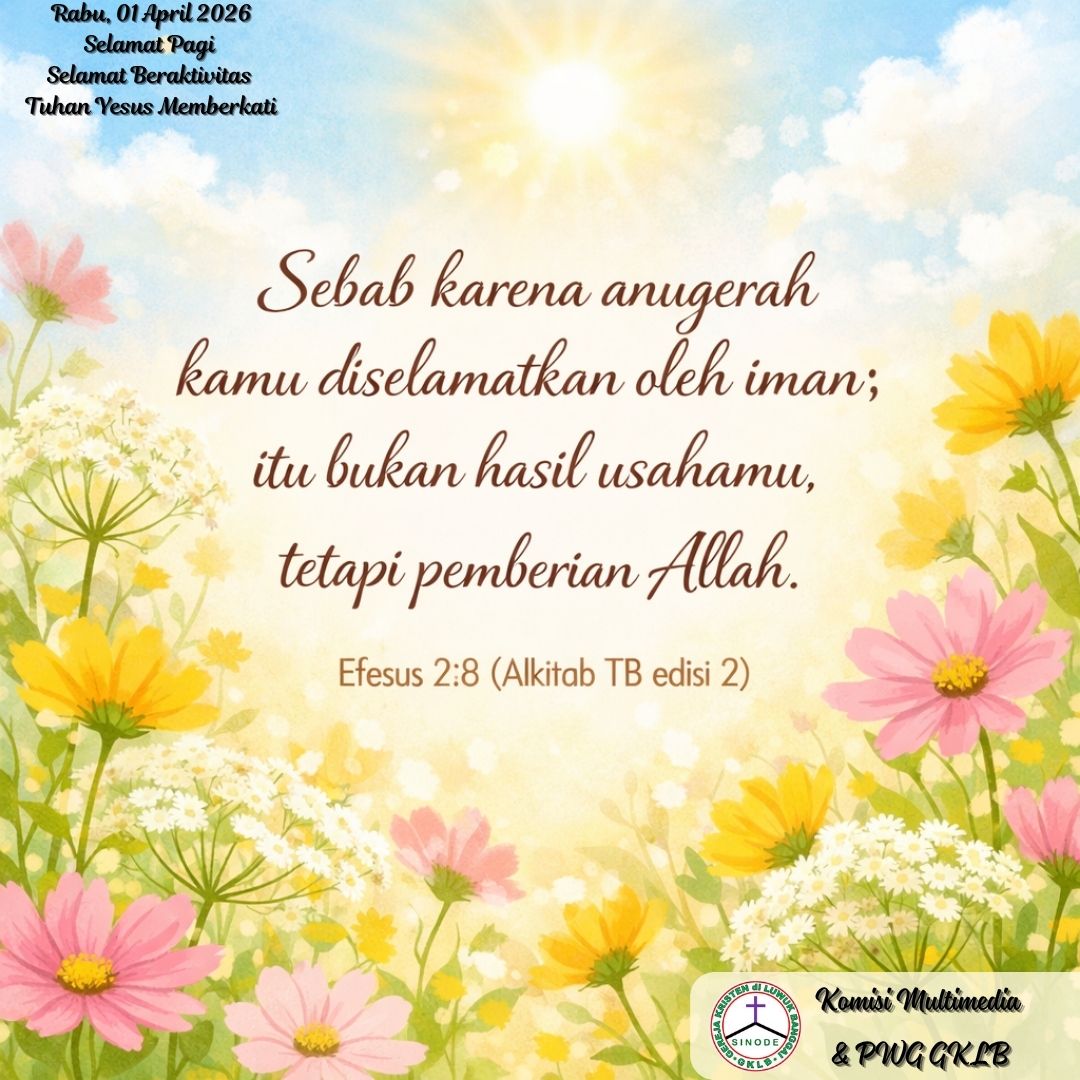 Karena itu, hari ini marilah kita hidup dengan penuh syukur atas anugerah keselamatan yang telah kita terima. Biarlah hidup kita menjadi respons nyata dari kasih karunia tersebut, dengan melakukan kebaikan, mengasihi sesama, dan tetap setia berjalan bersama Tuhan. Ingatlah bahwa kita adalah orang-orang yang telah diselamatkan, bukan karena usaha kita, tetapi karena kasih Tuhan yang luar biasa. Amin