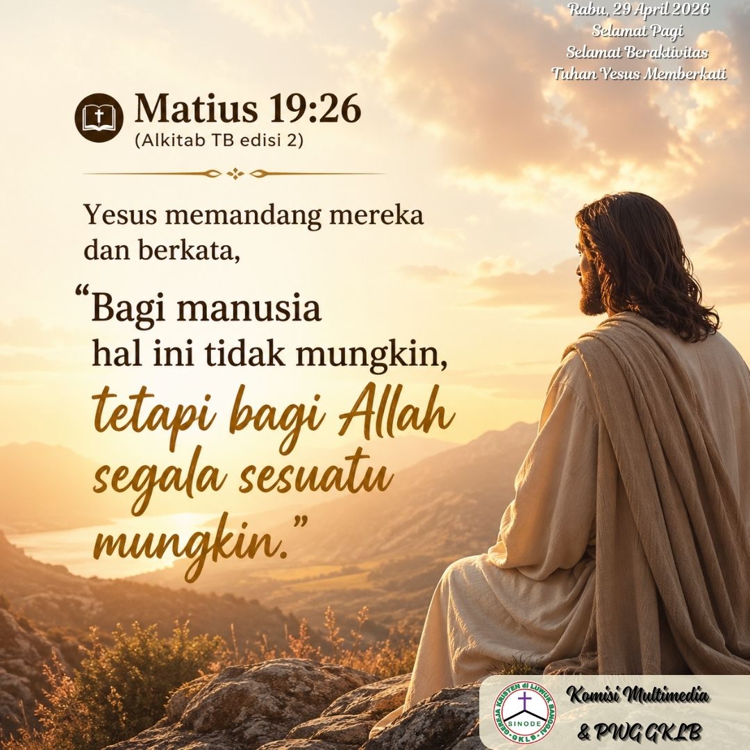 Matius 19:26 mengingatkan kita bahwa apa yang mustahil bagi manusia, mungkin bagi Allah. Dalam kehidupan sehari-hari, kita sering menemui batas kemampuan diri entah dalam pekerjaan, keluarga, kesehatan, atau pergumulan batin yang terasa berat. Ketika segala usaha sudah dilakukan namun hasilnya belum terlihat, mudah bagi kita untuk merasa kecil hati. Namun ayat ini menegaskan bahwa Tuhan tidak dibatasi oleh logika, waktu, maupun keadaan. Dia bekerja dengan cara yang sering kali melampaui pemahaman kita.